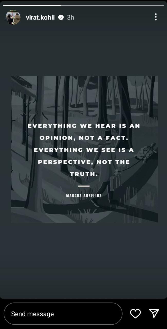 "Everything we hear is an opinion, not a fact. Everything we see is a perspective, not the truth," the quote shared by Kohli reads.