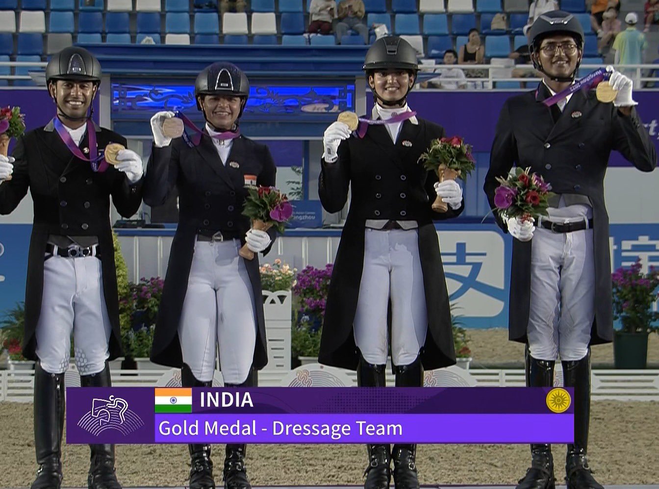 It is the first time in the history of the sport, India secured a team gold in dressage event. The last medal in dressage, a bronze, came during the 1986 edition.