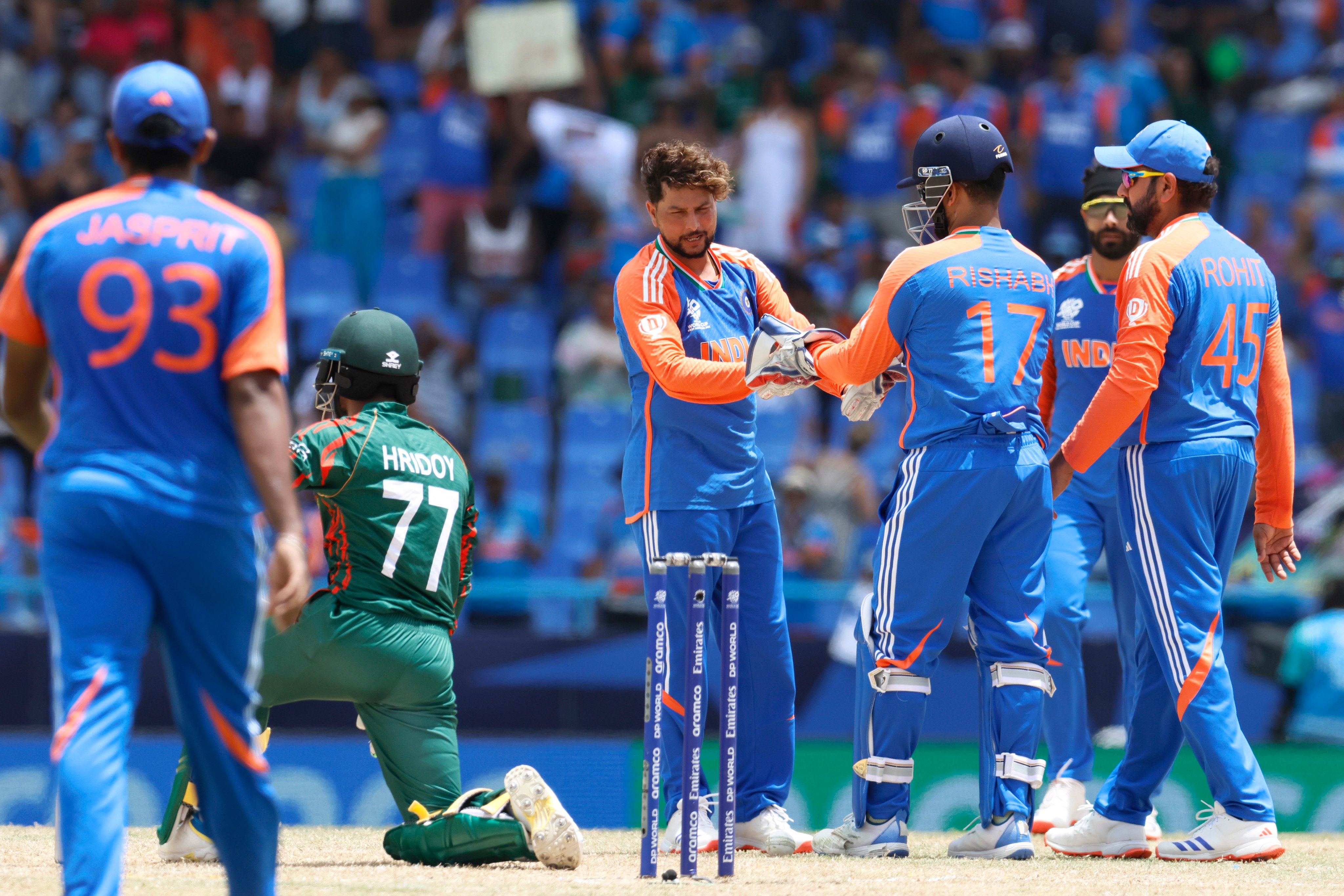 Rohit Sharma (C), Virat Kohli, Rishabh Pant (Wk), Suryakumar Yadav, Shivam Dube, Hardik Pandya, Axar Patel, Ravindra Jadeja, Arshdeep Singh, Kuldeep Yadav, Jasprit Bumrah.