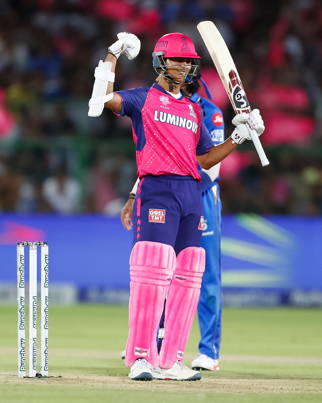 Yashasvi Jaiswal scored a hundred as table-toppers Rajasthan Royals defeated Mumbai Indians by nine wickets in their Indian Premier League match in Jaipur on Monday. Sandeep Sharma grabbed a maiden five-wicket haul to help Rajasthan Royals restrict Mumbai Indians to 179/9.