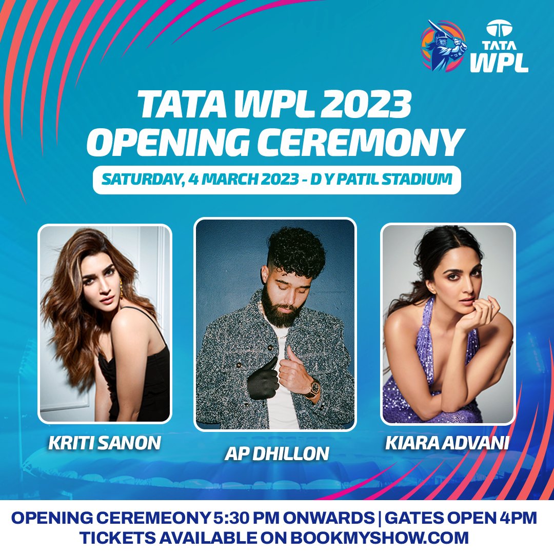 A few well-known performers will attend the occasion, including Kiara Advani and Kriti Sanon. At the opening ceremony, renowned singer and music composer Shankar Mahadevan will also perform the WPL anthem. AP Dhillon, a Punjabi pop singer, will also perform some of his biggest hits that evening.