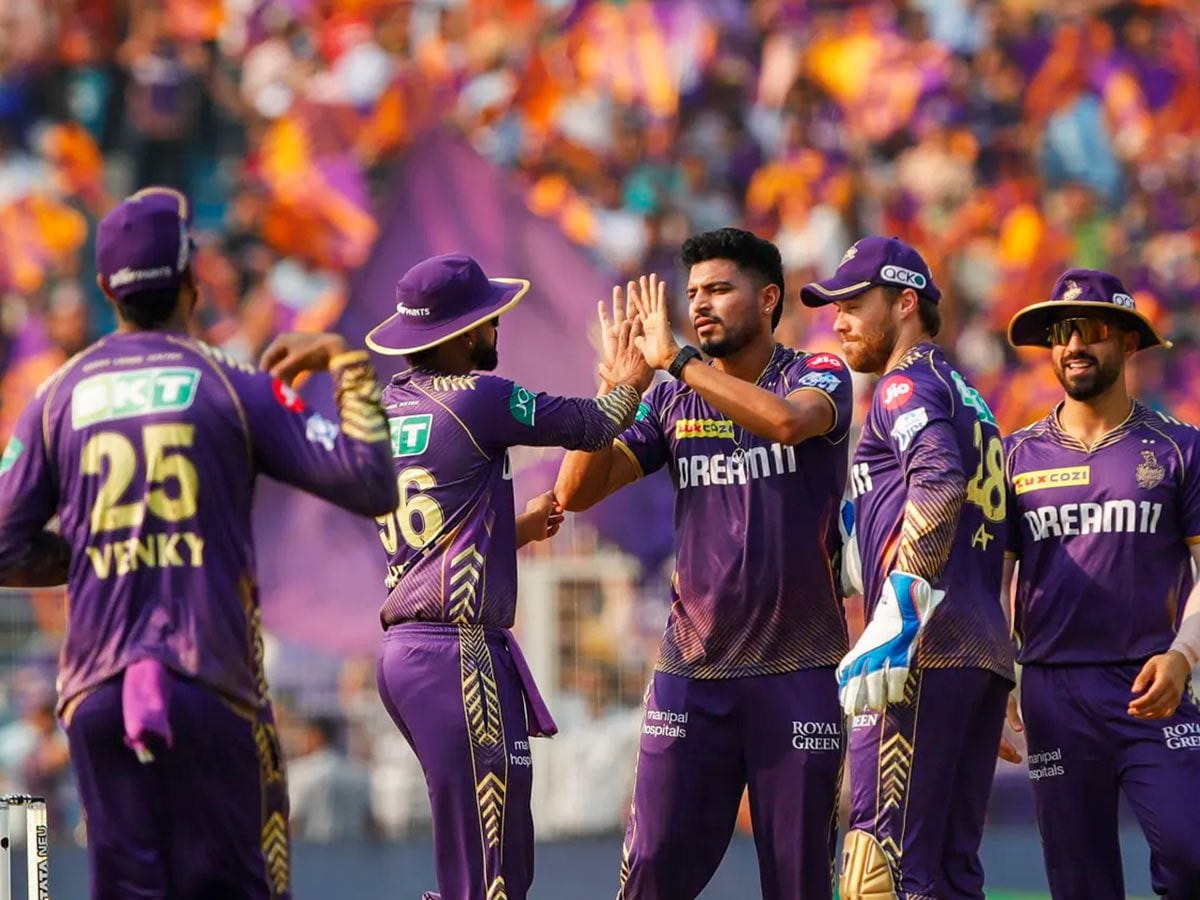 Kolkata Knight Riders: Philip Salt (wk), Sunil Narine, Angkrish Raghuvanshi, Shreyas Iyer (c), Venkatesh Iyer, Rinku Singh, Andre Russell, Ramandeep Singh, Mitchell Starc, Varun Chakaravarthy, Harshit Rana.