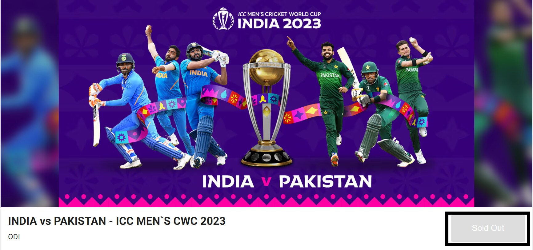 After around 40 minutes of the India Pakistan tickets going live on the platform, the screens of many users were refreshed with the following screen which showed that tickets have been sold out.