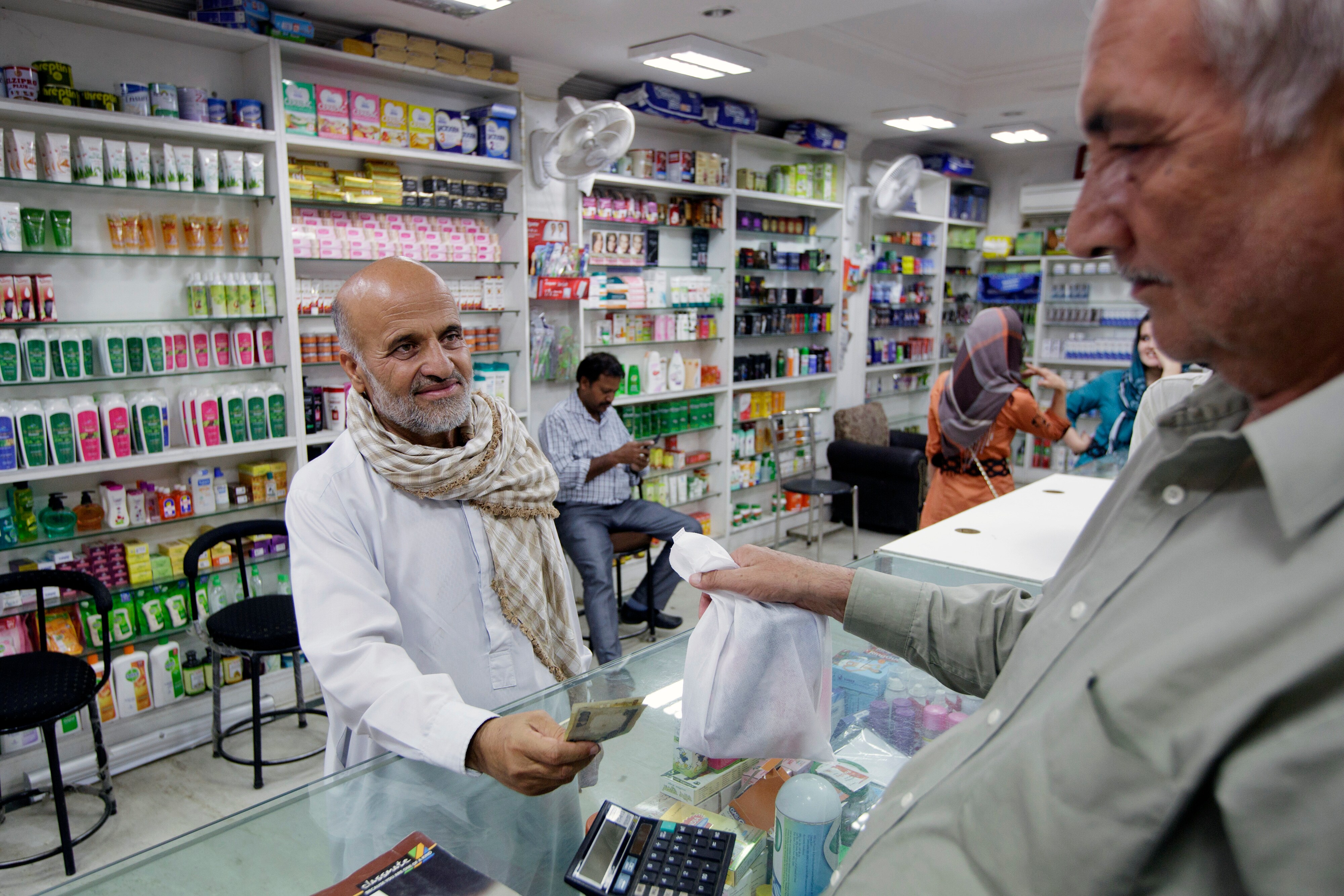 A man purchases medicines at a pharmacy in the Lajpat Nagar area of New Delhi, India (Photographer: Kuni Takahashi/Bloomberg)