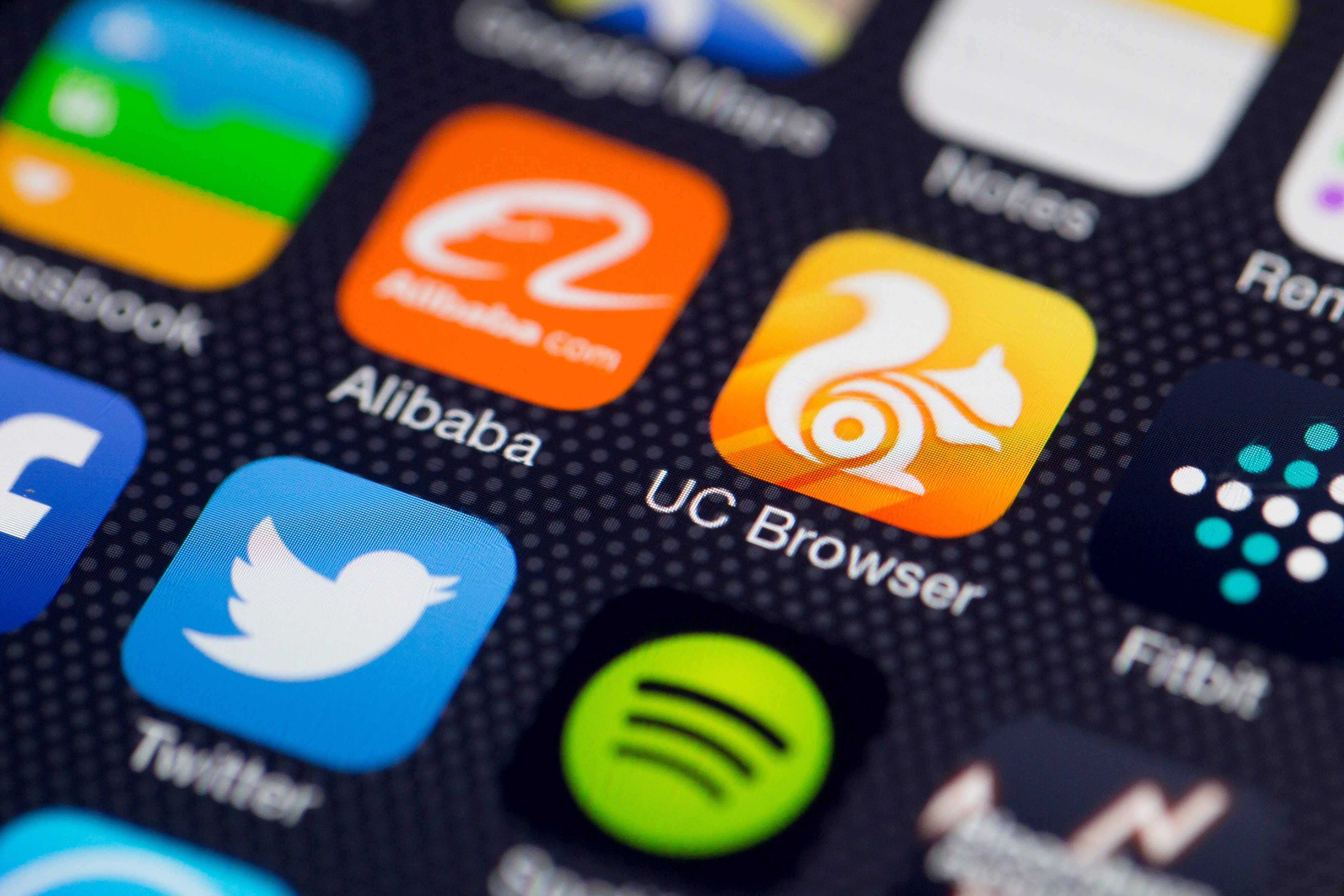 UCWeb Inc.’s UC Browser application icon, top right, is displayed next to an Alibaba Group Holding Ltd. icon on an Apple Inc. iPhone 5s in an arranged photograph in Hong Kong, China (Photographer: Brent Lewin/Bloomberg)