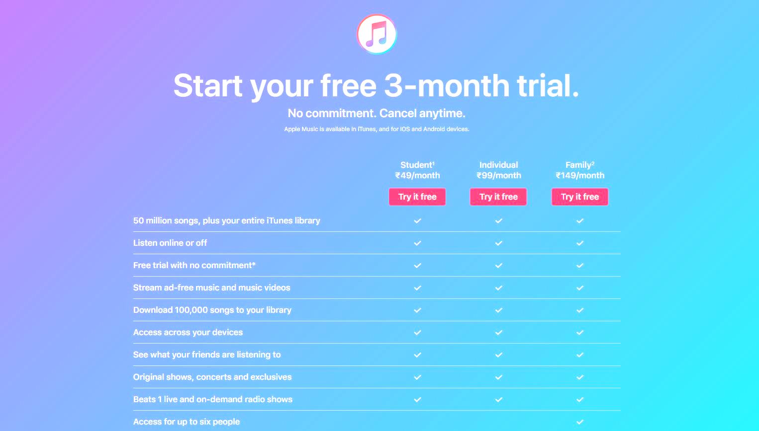 AM is also letting students sign up for Rs 49 per month. All these plans come with the appeal of a three-month free trial, for which users are required to fill in their card details.