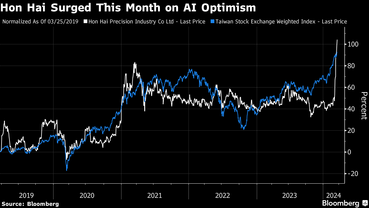 Read More: Hon Hai Jumps by Most in Years After Strong AI Outlook