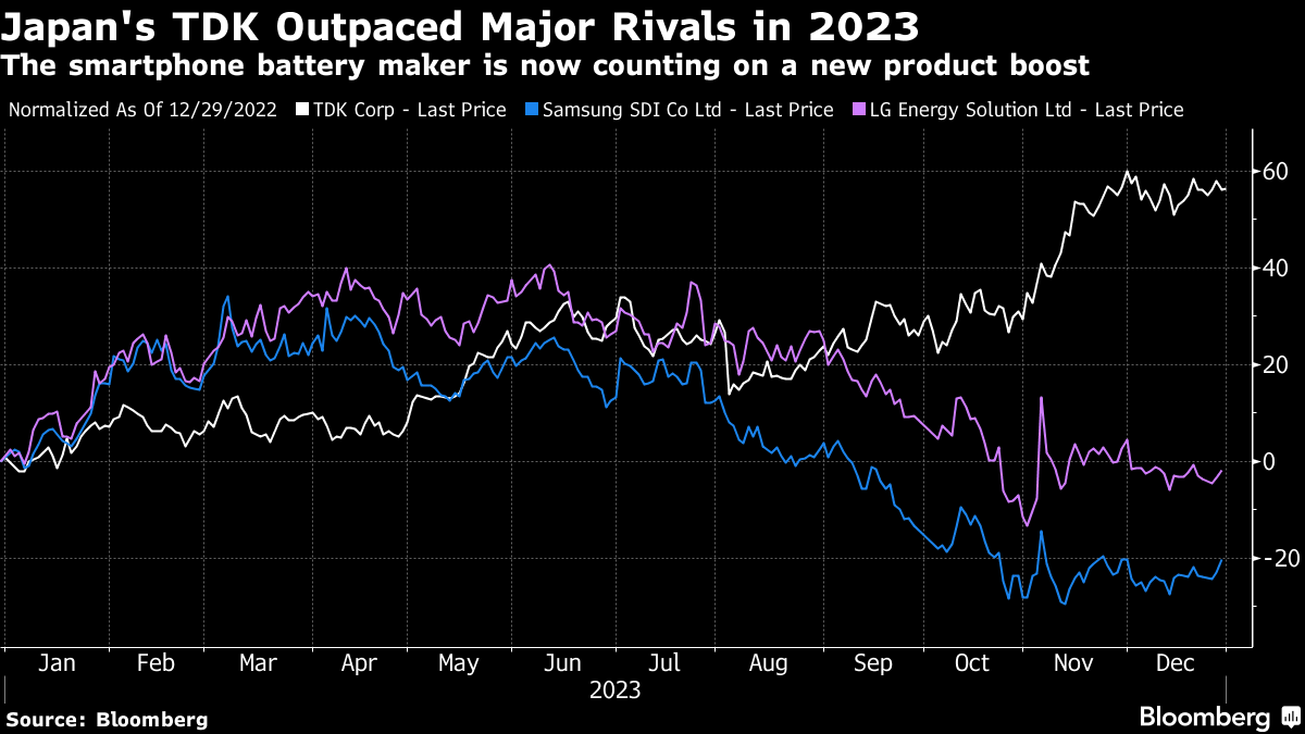 The Apple Inc. supplier is the first to apply to smartphones a technological breakthrough that its rivals have been exploring mainly as a means to stretch mileage for electric vehicles, according to TDK Chief Executive Officer Noboru Saito. In the first half of 2023, the company began shipping small-size lithium-ion batteries using silicon electrodes, manufactured by Hong Kong-based subsidiary Amperex Technology Ltd. (ATL).