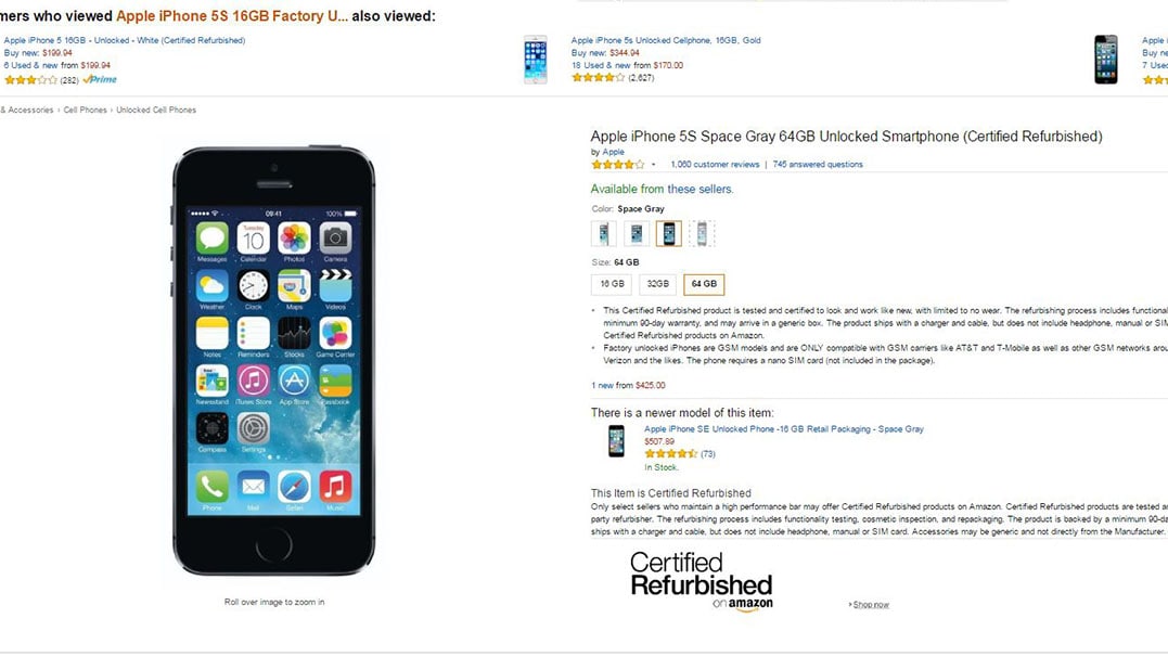 On average, buying a 64GB refurbished unlocked iPhone 5S will cost you around $400 (Rs 24,800 approx) in the US.