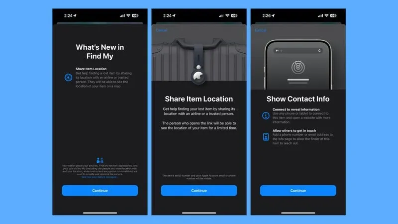 Apple provides an example of how to locate misplaced luggage through sharing item location with an "airline or trusted person" by putting it in the description. Previously, Find My permitted you to share item locations with your contacts, but now you may send this information to anyone you trust, even if they are not in your address book.