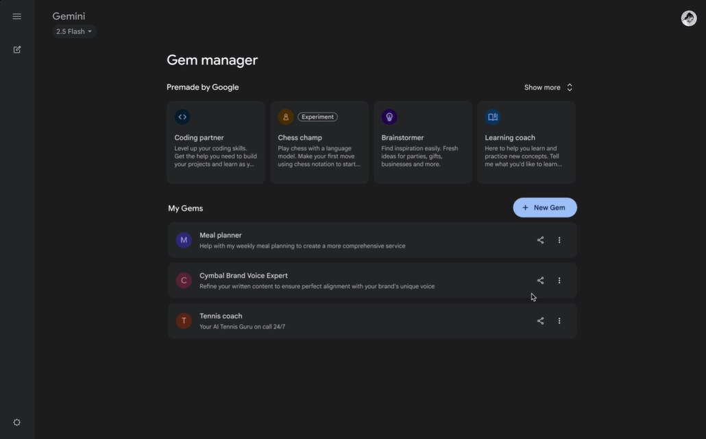 The Gems feature was first introduced in 2024 with Gemini Advanced. Gemini also offers pre-made gems to users, such as writing editor, career advisor, coding assistant, learning coach and brainstorming partner.