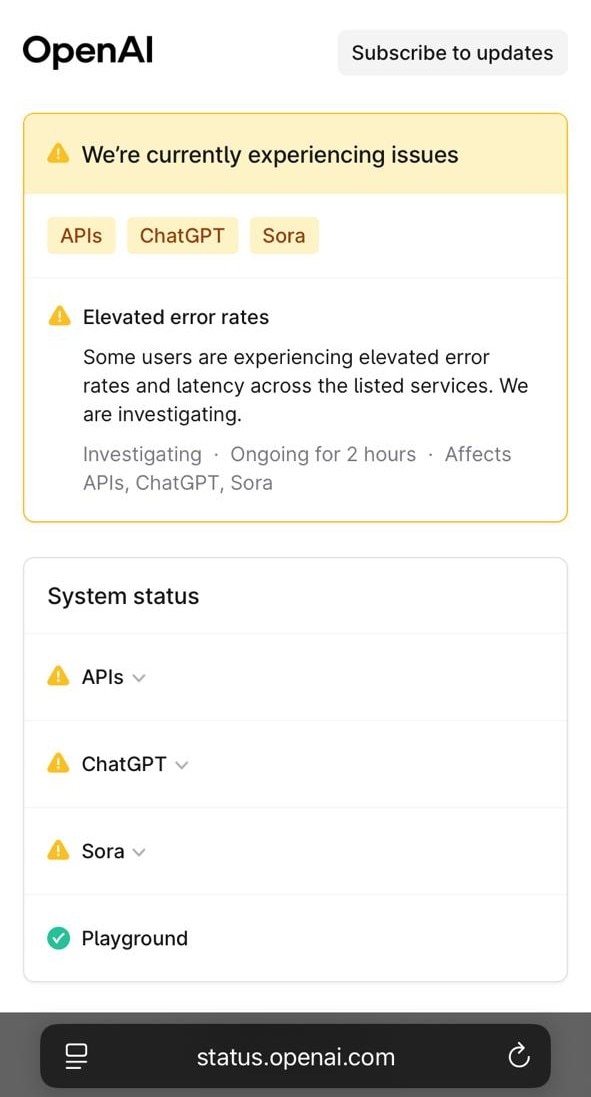 Users have not just faced issues on ChatGPT, there are also problems reported on AI tools including application programming interfaces and Sora. The issue has been ongoing for about two hours, according to OpenAI.