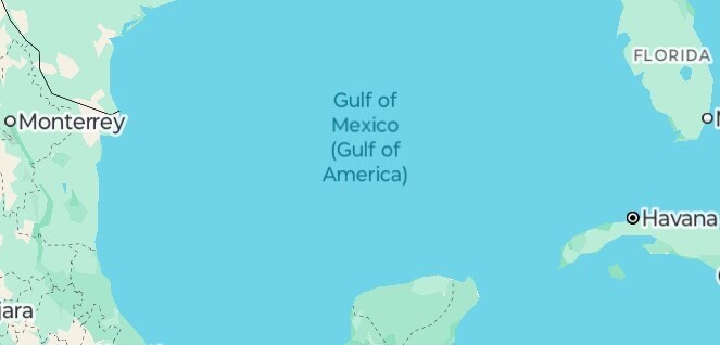 A screenshot of Google Maps showing the Gulf of Mexico renamed to Gulf Of America. This move will also be copied by Apple for its maps app.