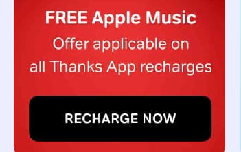 Airtel prepaid customers can check whether they are eligible for the free Apple Music offer by going to their Airtel Thanks app. Users can verify through the app whether this benefit is available for their number. The free Apple Music offer is applicable on all Airtel Thanks app recharges.