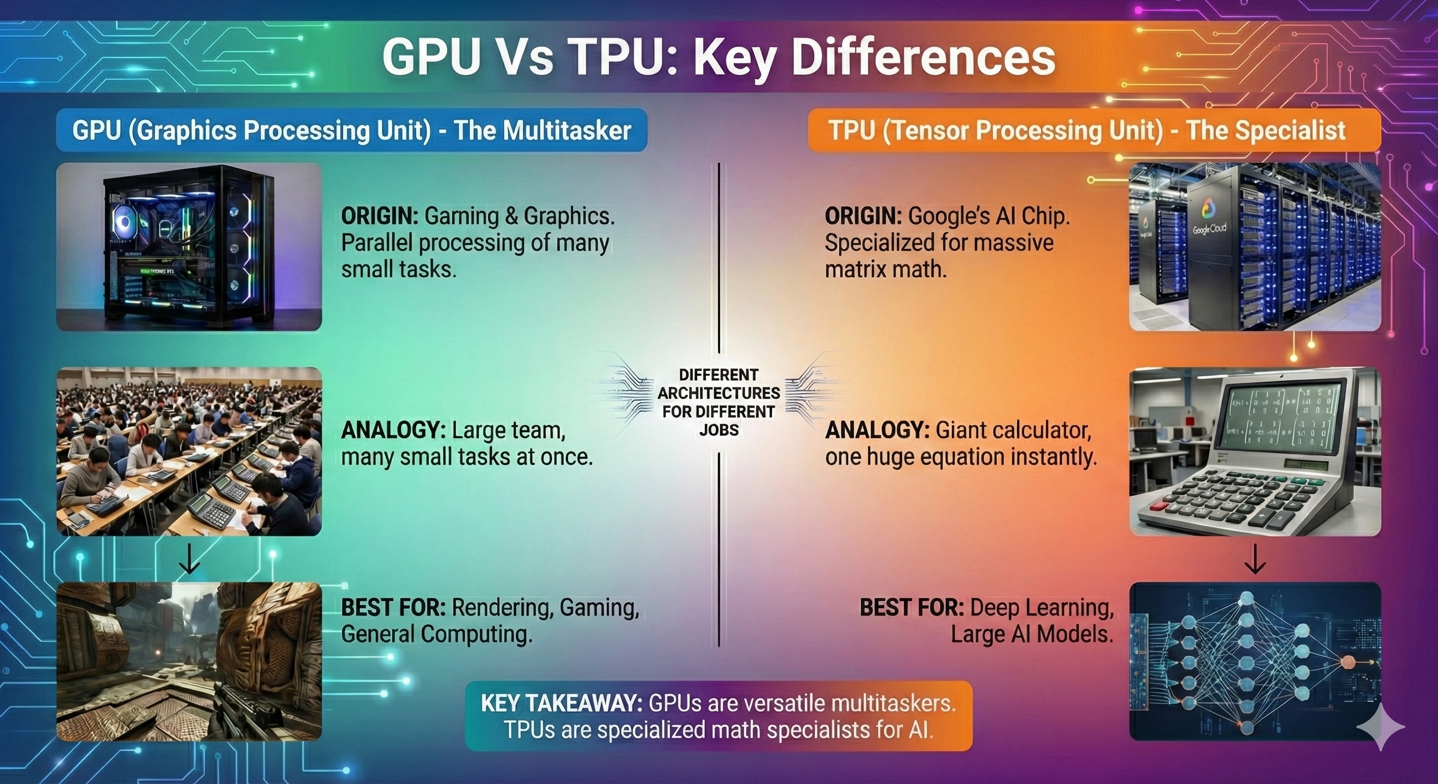 Three differences between GPU and TPUs. (Image: Nano Banana Pro)