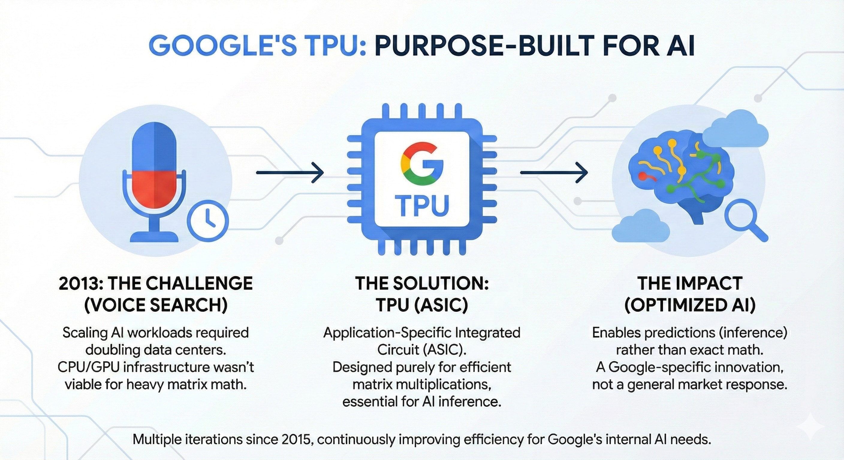The genesis of Google's TPUs dates back to 2013, when the company realised if every Android user utilised voice search for three minutes a day, it would require Google to double its data centre footprint.