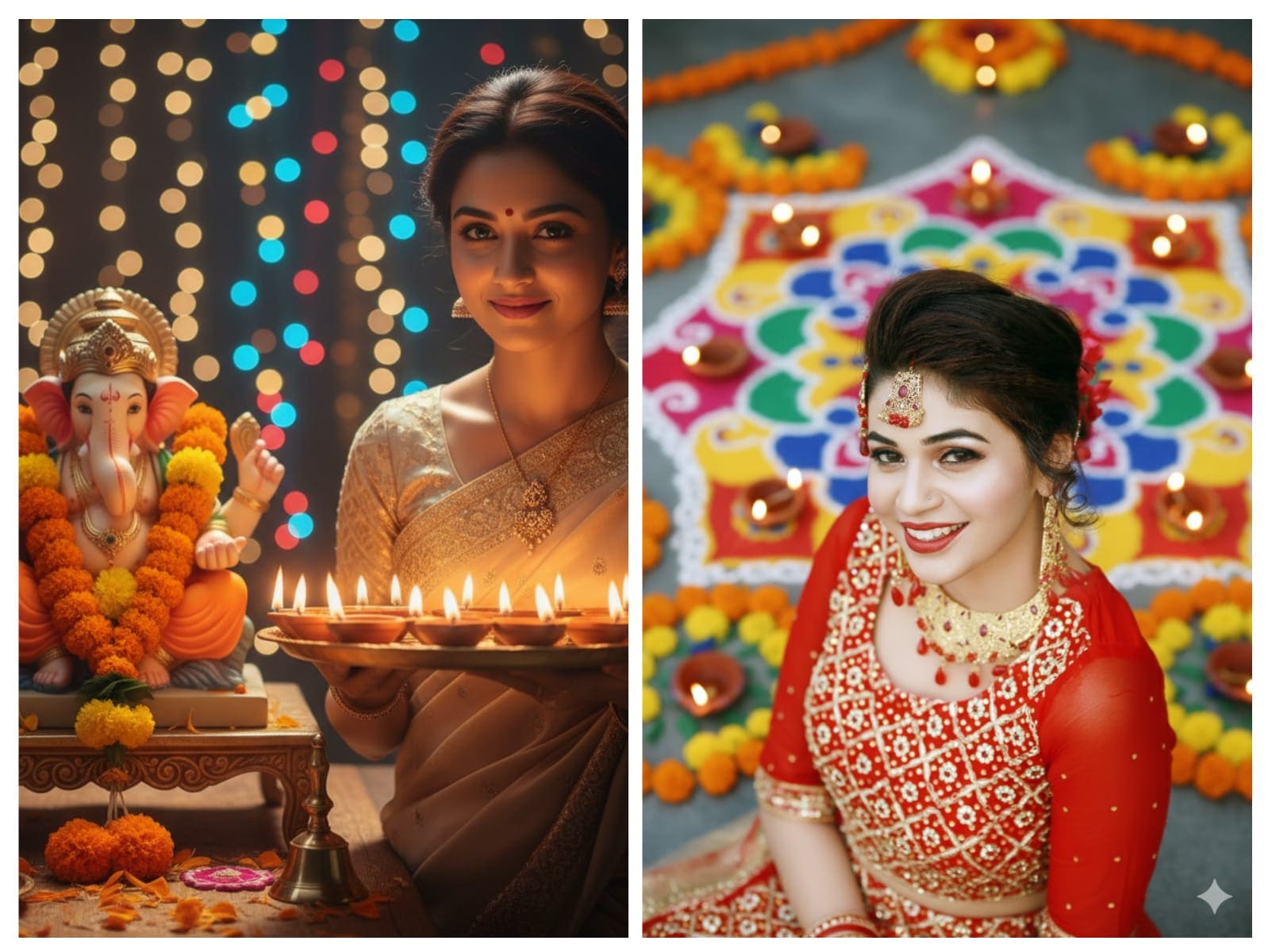 Below are five Google Gemini AI photo editing prompts for creating beautiful Diwali-themed portraits with Lord Ganesh, rangolis, diyas, and more.