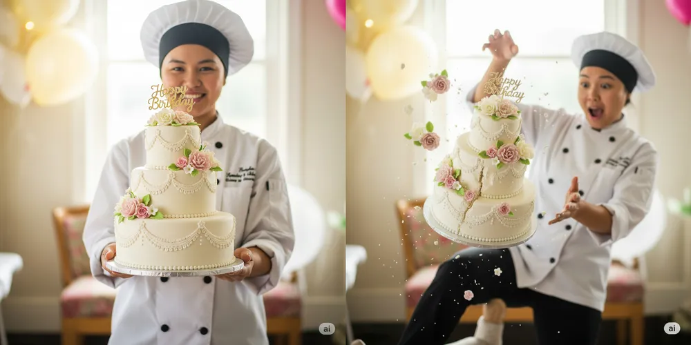Prompt 2 (in the same session): Generate an image showing what would happen if they tripped.