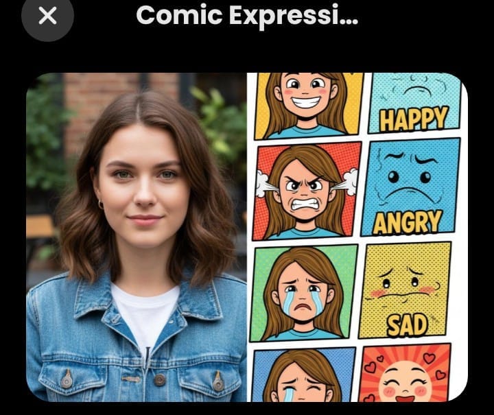 Tucked inside the Nano Banana app is another creative feature called Comic Expressions. By uploading a photo (for instance, a close-up or mid-shot) into it, you can basically convert your image into four different everyday expressions — happy, angry, sad, and joyful — that too in a style straight out of the comic books.