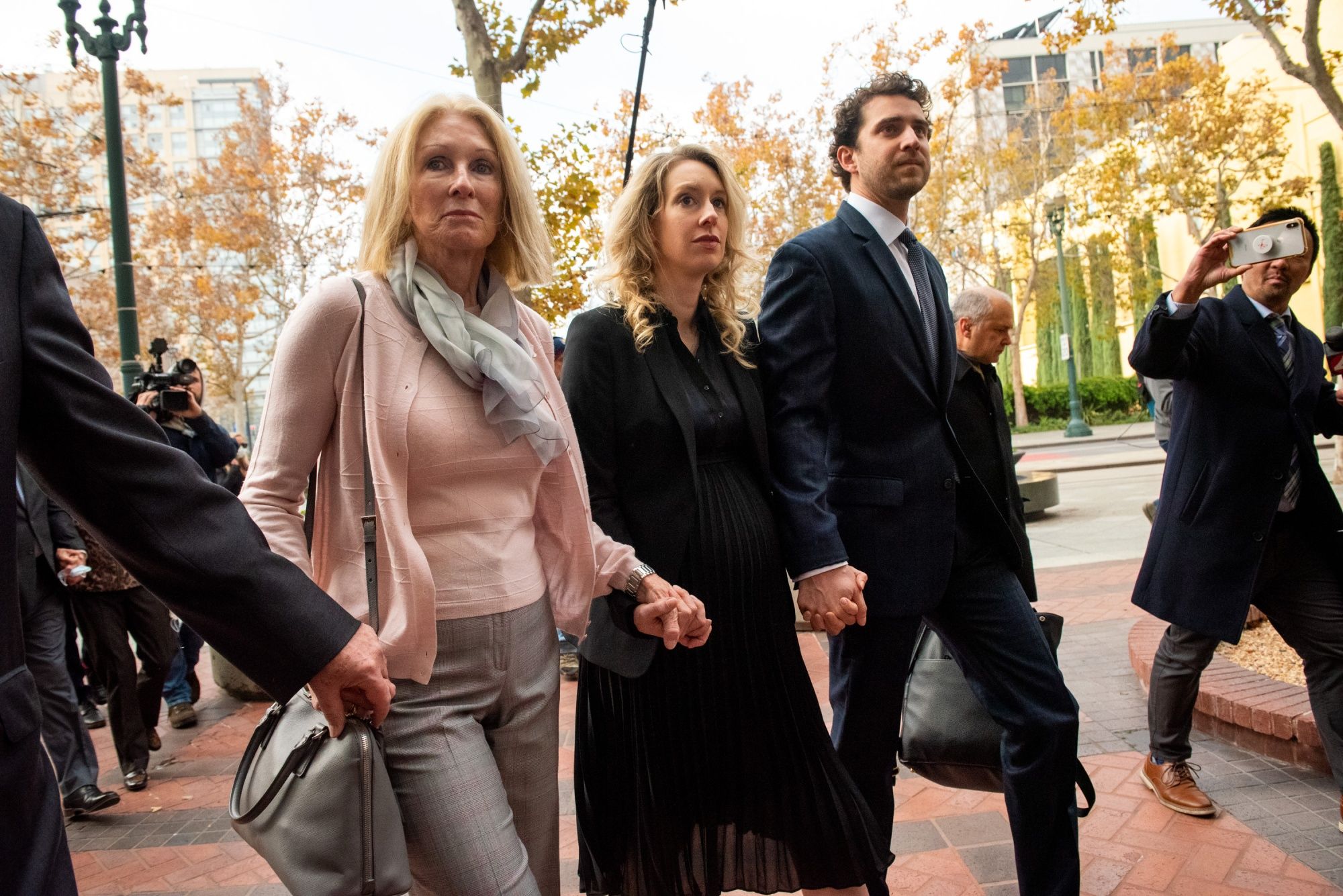 Elizabeth Holmes, center, arrives at federal court in San Jose, Calif., on Friday. Photographer: Marlena Sloss/Bloomberg