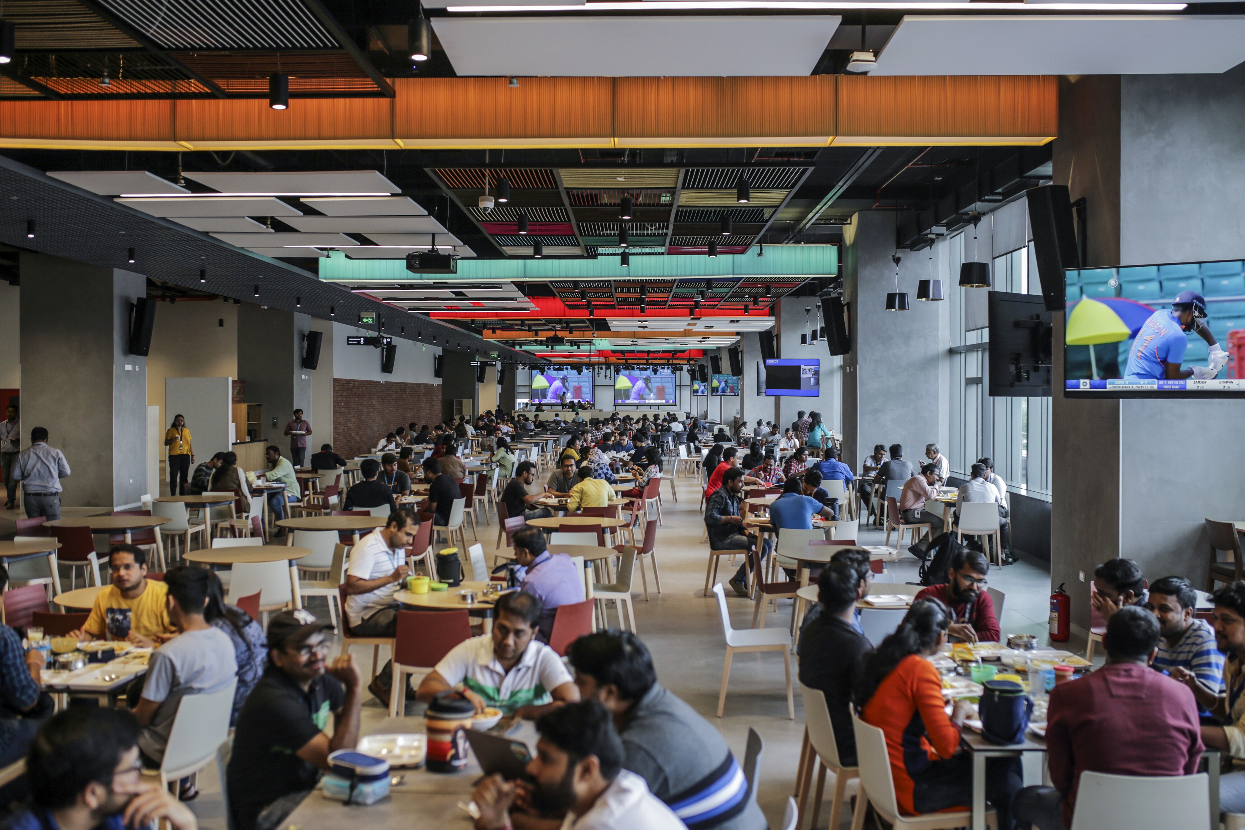 In contrast to this 15,000-worker building, the largest Amazon buildings in Seattle average 5,000 workers. Product managers, AI scientists and software developers hurry about in the new campus helping build global services such as Kindle, Audible and AWS, and support online retail operations and payment services within the country. They innovate and localize services for India, adding to existing offerings such as doorstep pickups, installation and repair of home electronics.