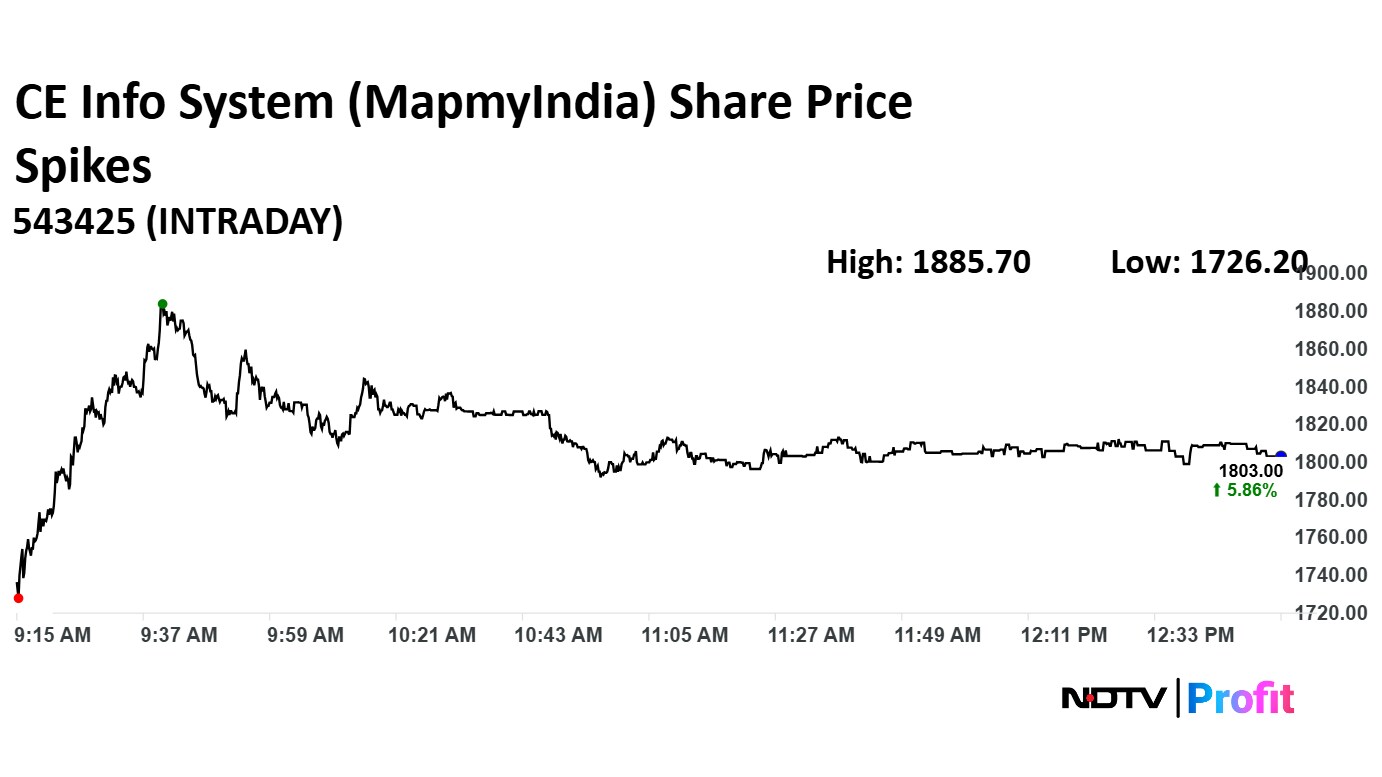 Good features…must try! pic.twitter.com/bZOPgvrCxWThe scrip rose as much as 10.80% to Rs 1,888 apiece. It pared gains to trade 6.02% higher at Rs 1,806.50 apiece, as of 12:53 p.m. This compares to a 0.38% decline in the NSE Nifty 50 Index.
