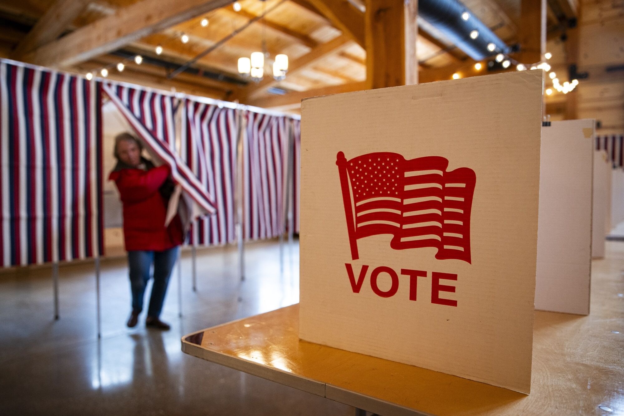 A voter casts their ballot at a polling location in Concord, New Hampshire, U.S.