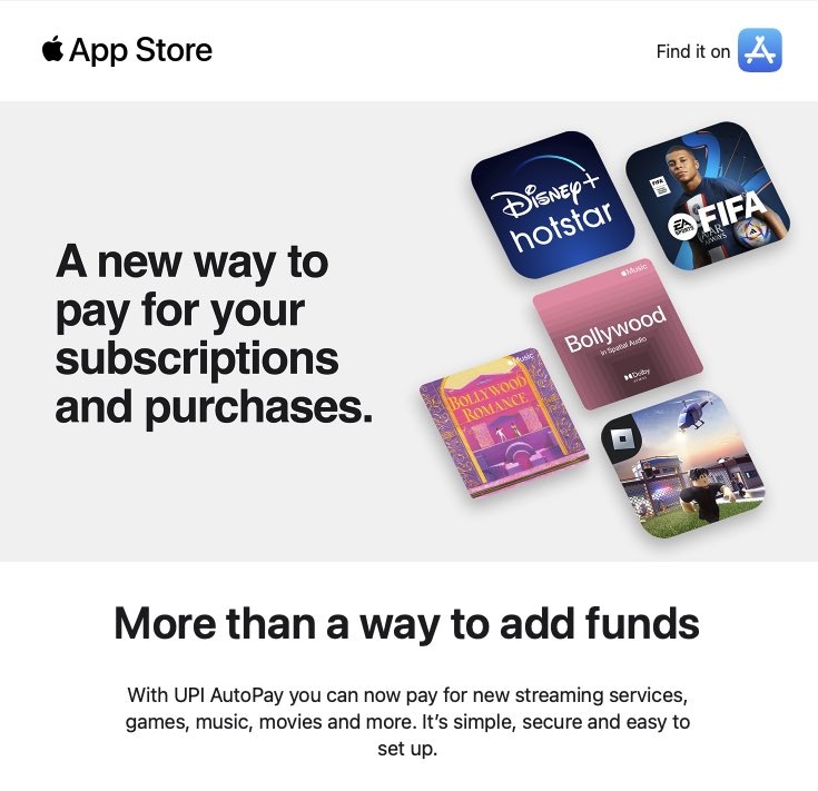 According to the email seen by the publication, the email says, “With UPI AutoPay, you can now pay for new streaming services, games, music, movies, and more. It's simple, secure, and easy to set up.”