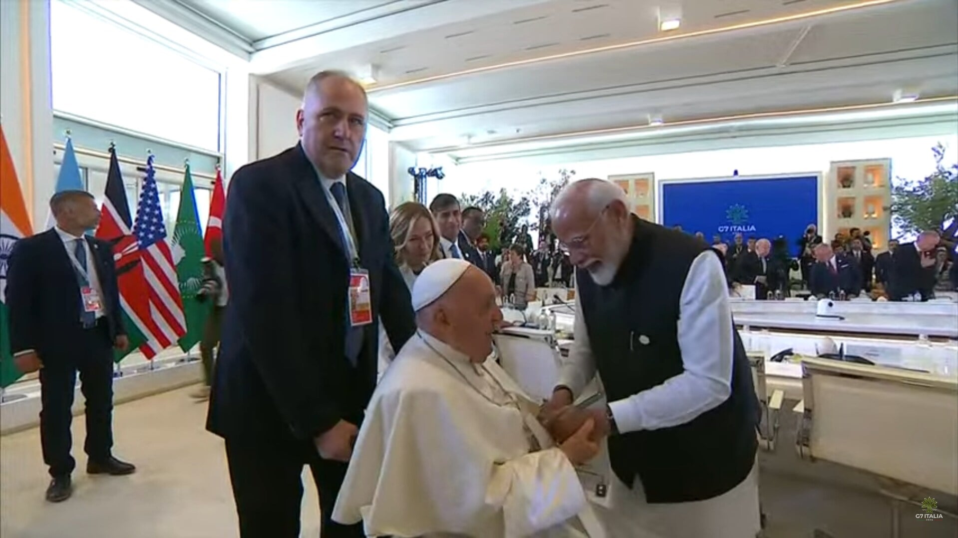 Screengrab of Prime Minister Narendra Modi meeting Pope Francis. (Source: YouTube,G7 Italy 2024)