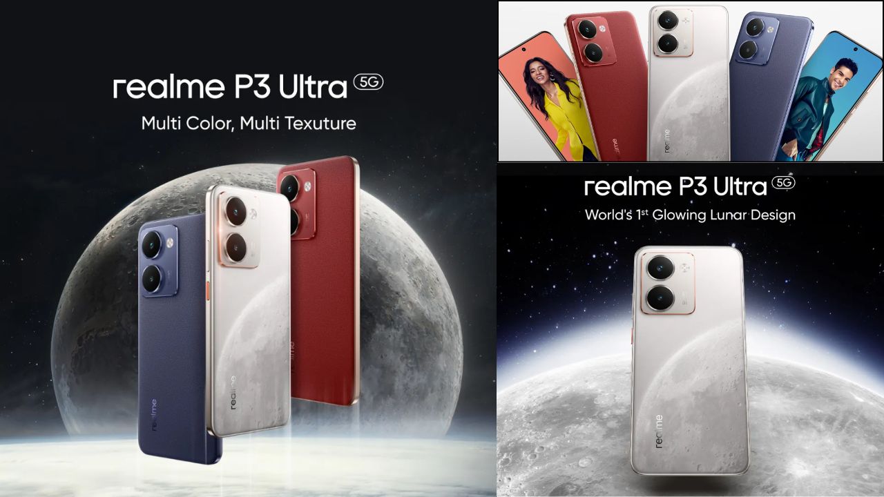 Realme P3 Ultra colour options have reference to planets and moons. There are Orion Red, Neptune Blue and Lunar white, with the last one touting a glow-in-the-dark Lunar design.