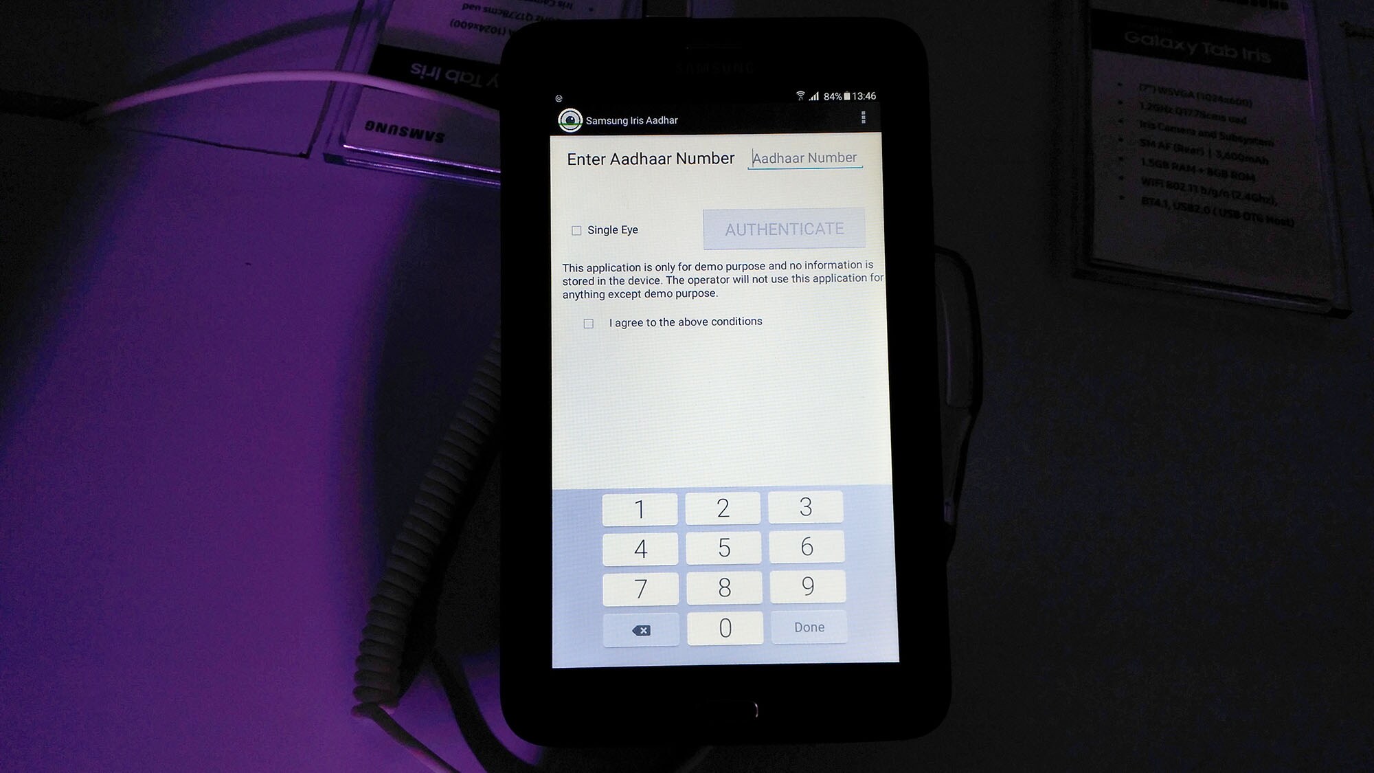 Samsung is offering the Galaxy Tab Iris tablet, with an Iris scanner that's not for unlocking your device, but rather as a key to enter your Aadhaar account. The tablet is directly linked to UIDAI's Aadhaar database, which according to recent reports has details of over 1 billion Indian citizens.