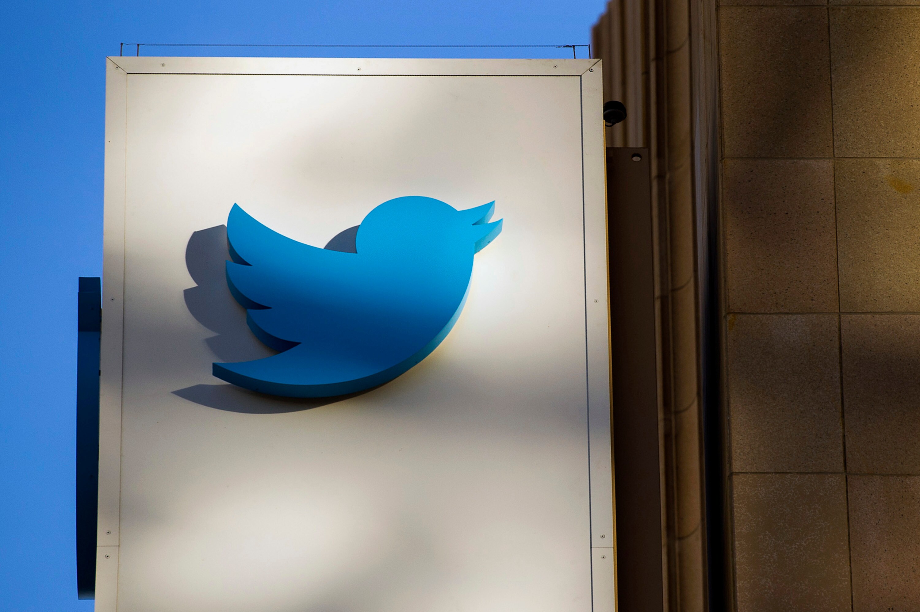 The Twitter Inc. logo is displayed on the facade of the company’s headquarters in San Francisco, California, U.S. (Photographer: David Paul Morris/Bloomberg)