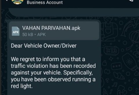 An Android malware campaign is targeting Indian users through fake traffic e-challan messages on WhatsApp, according to cybersecurity company CloudSEK. Scammers are sending fake e-challan messages impersonating the Parivahan Sewa or Karnataka Police to trick victims into installing a malicious app that steals personal information and facilitates financial fraud.