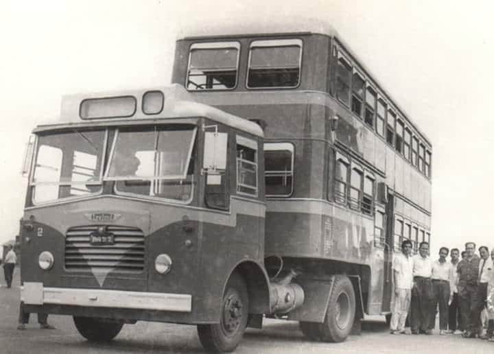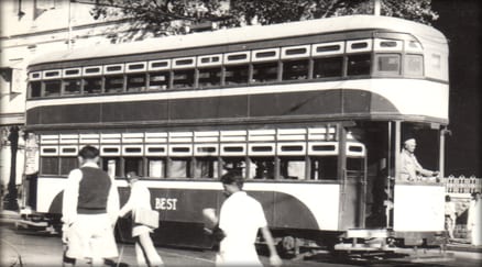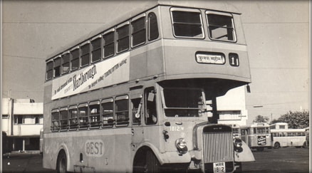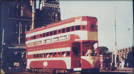 BEST operated double-decker tram on the streets of Mumbai (back then Bombay)