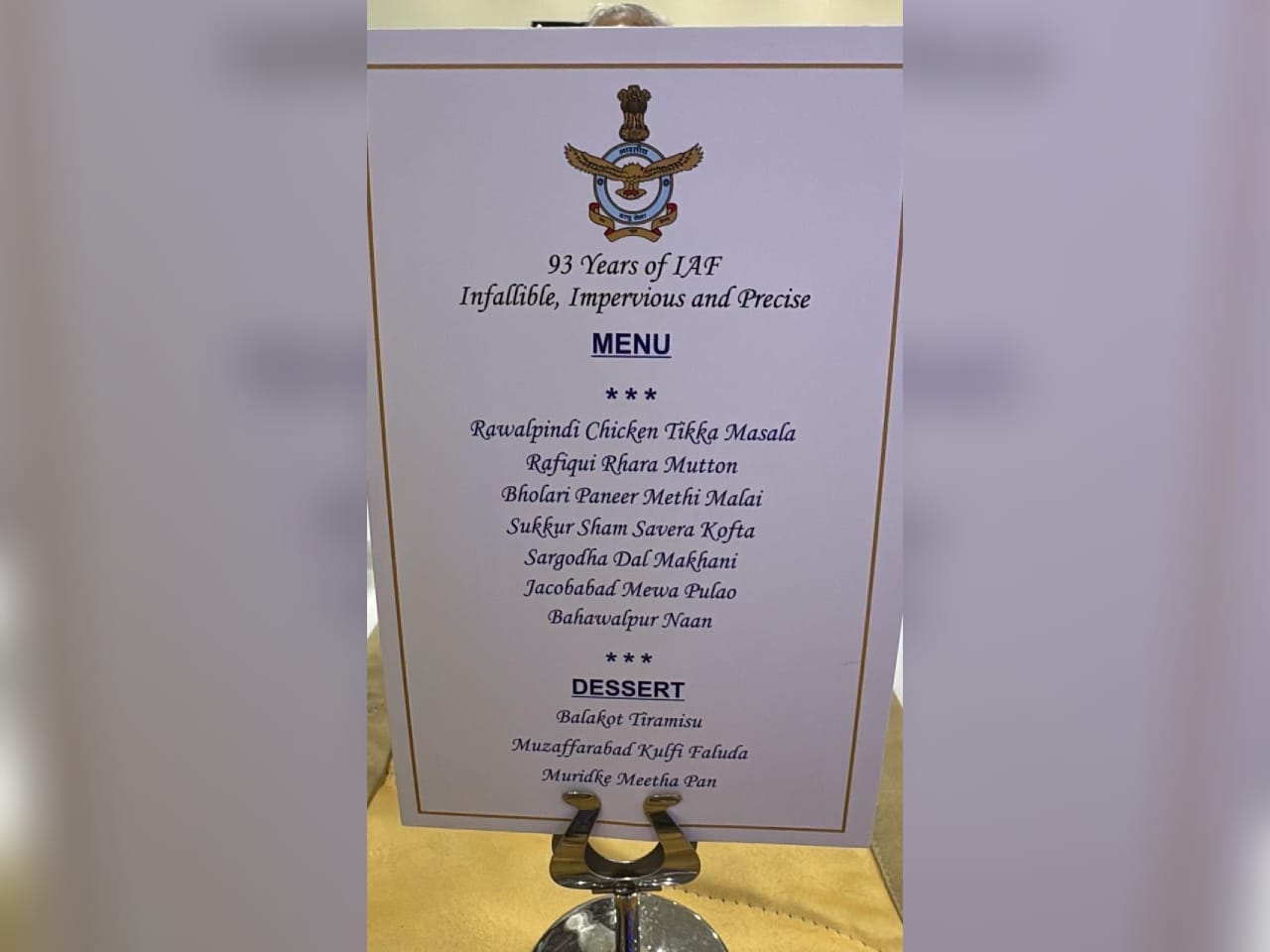 A dinner menu at a ceremony of the Indian Air Force that named various dishes after Pakistani cities targeted for anti-terror operations has gone viral on social media.