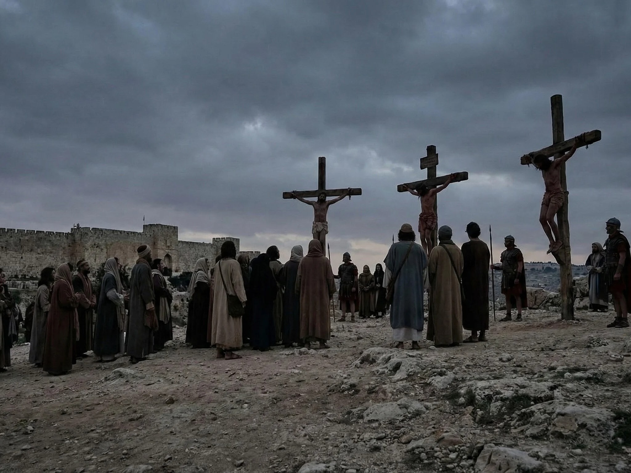 A user entered the prompt, "Create an image at 31.7785° N, 35.2296° E, April 3, 33 CE, 15:00 hours," to create an image of the crucifixion. April 3 is widely regarded as the date of the crucifixion of Jesus.