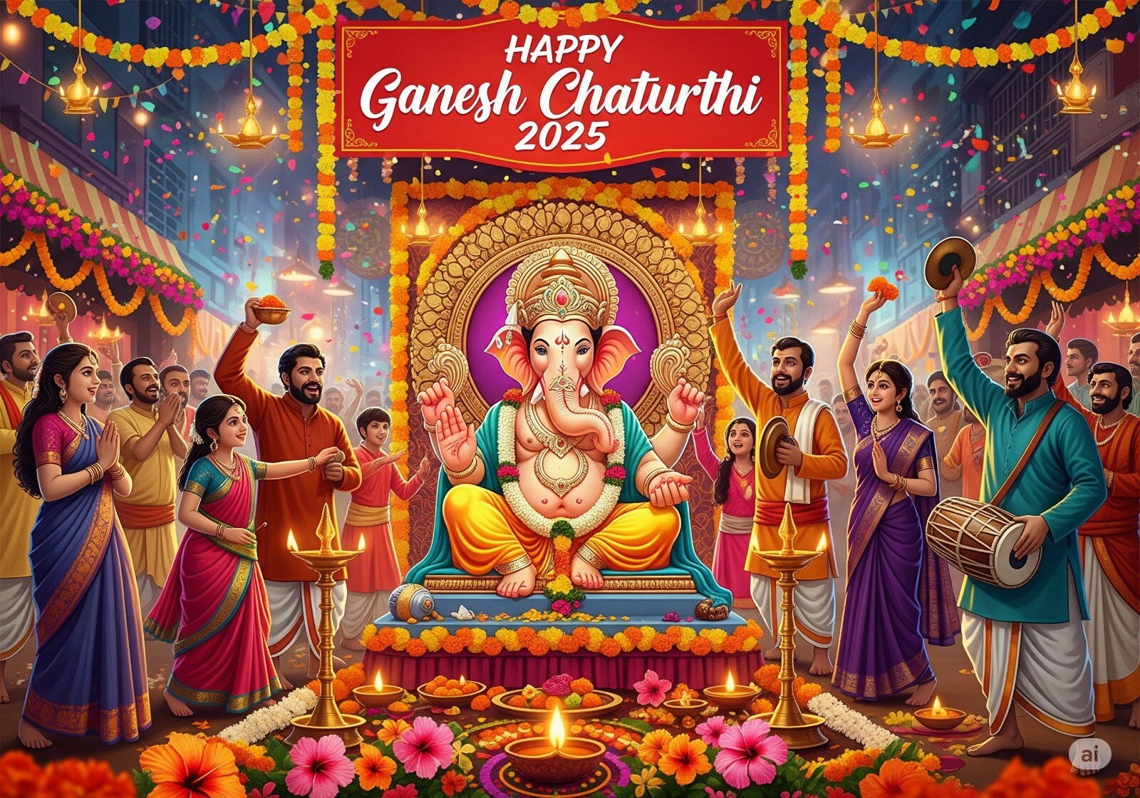 • Happy Ganesh Chaturthi 2025! May Lord Ganesha bless your home with peace, joy, and boundless prosperity.