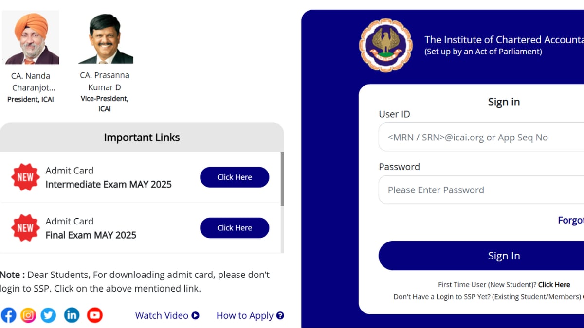 The Institute of Chartered Accountants of India (ICAI) released the admit cards for the Chartered Accountancy (CA) Intermediate and Final examinations for May 2025 today. Several media reports had earlier suggested that the hall tickets could go live soon on the official website — eservices.icai.org on April 16.