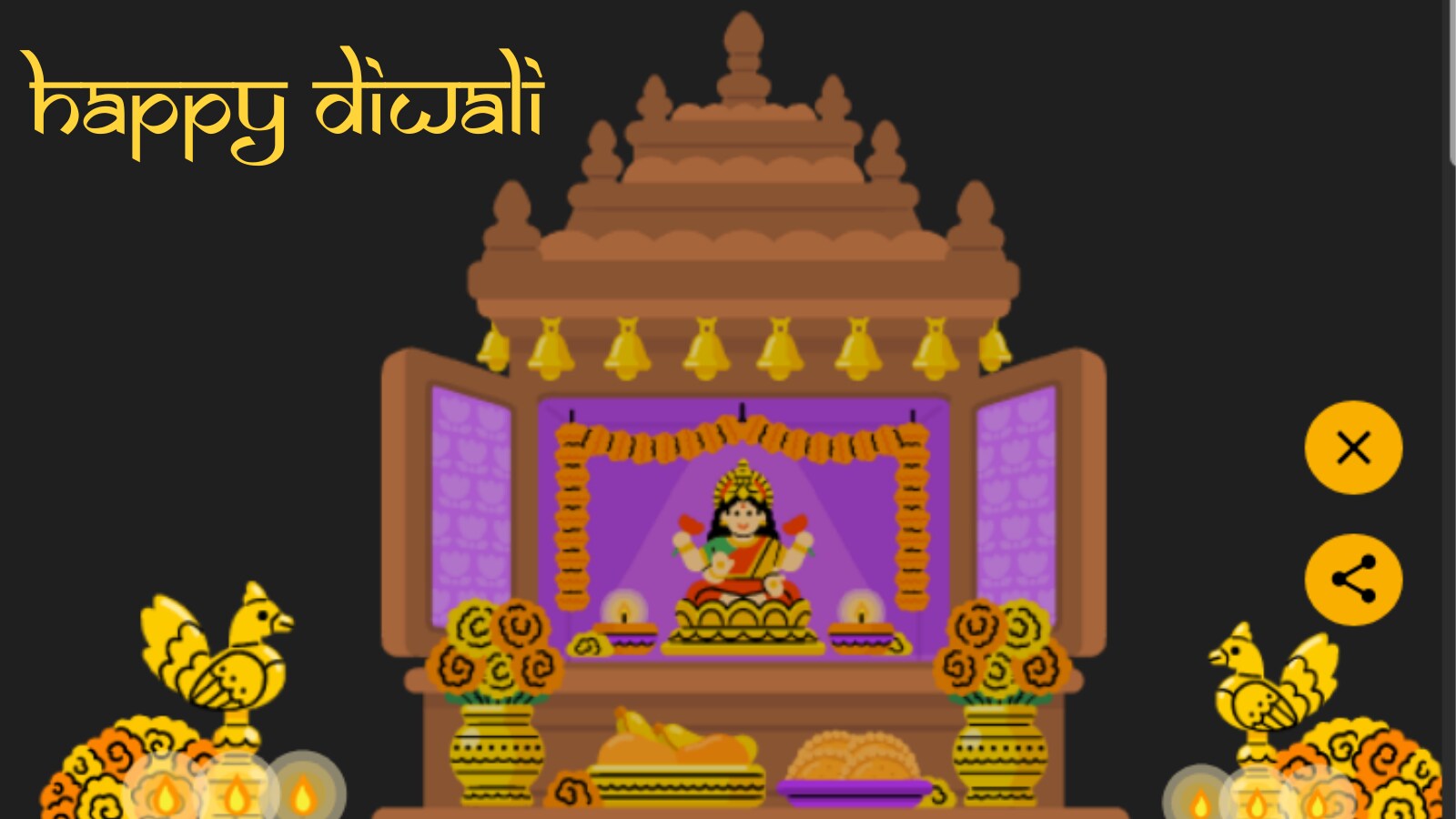 Clicking on the flame of a lit lamp causes beautiful bouquets of marigold flowers to appear. You click again, a box of laddoos and other sweet appears. The grand finale unfolds once all the diyas are lit, and with every click, there is a firecracker lighting up your screen.