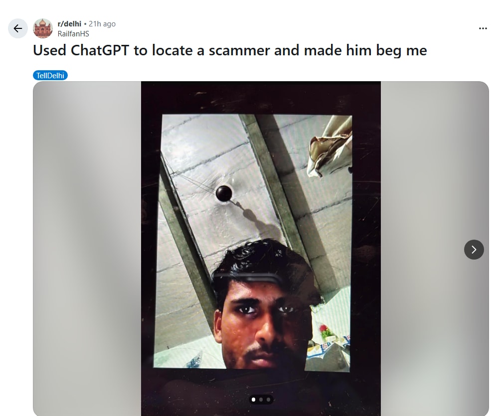 A man from Delhi tricked a scammer into pleading for mercy by crafting a counterfeit payment link using ChatGPT, which revealed the fraudster's location and captured his photograph. The gripping story was detailed in a Reddit post that quickly gained widespread attention. The IT professional shared his detailed interaction with the scammer in the post titled, “Used ChatGPT to locate a scammer and made him beg me.”