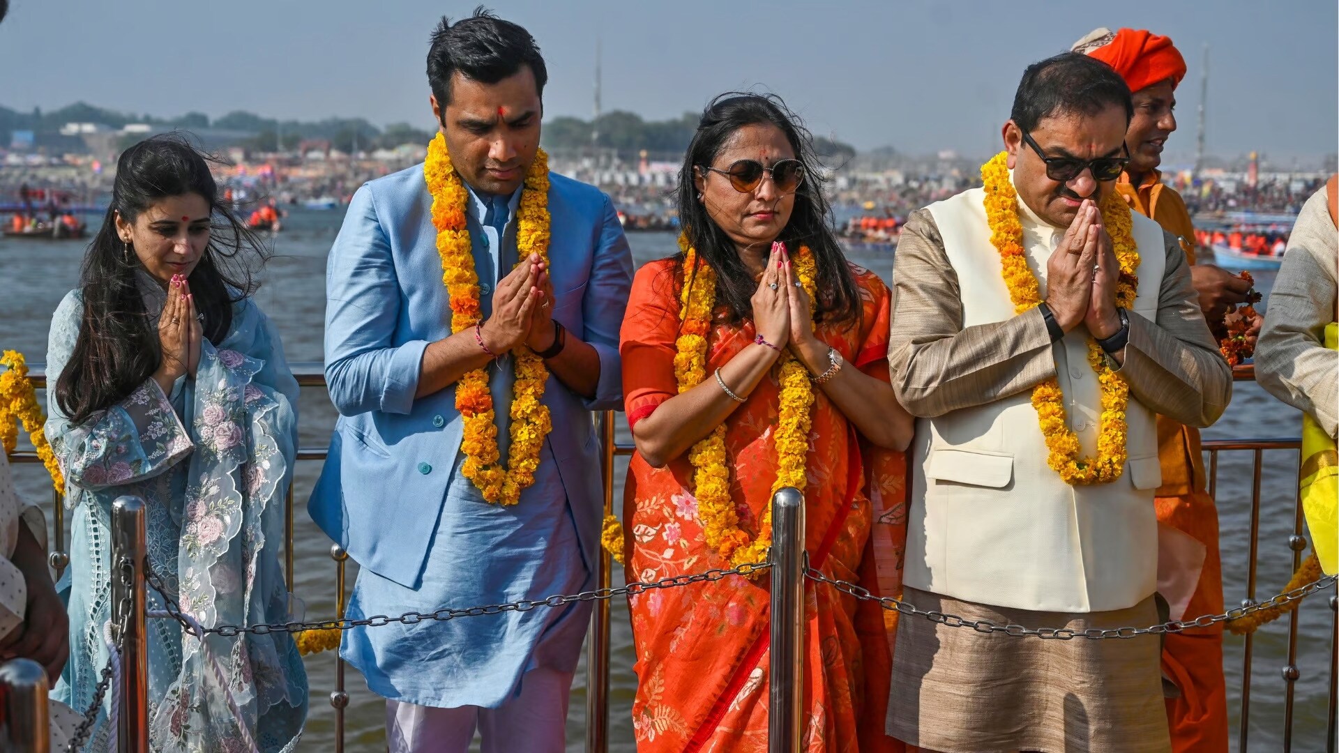 Adani reached Triveni Sangam by boarding a special boat jetty and performed Puja as per tradition.