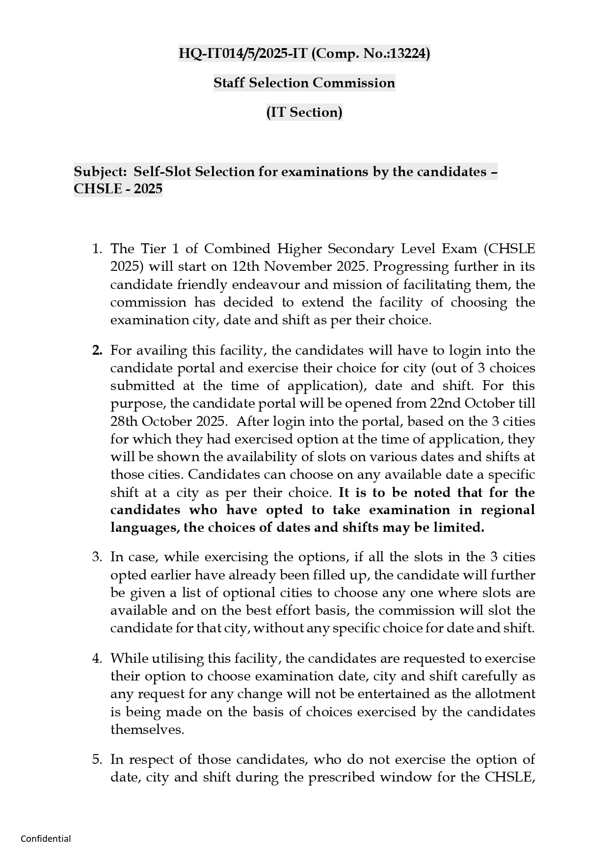 SSC CHSL Exam 2025 Self Slot Selection Dates Announced