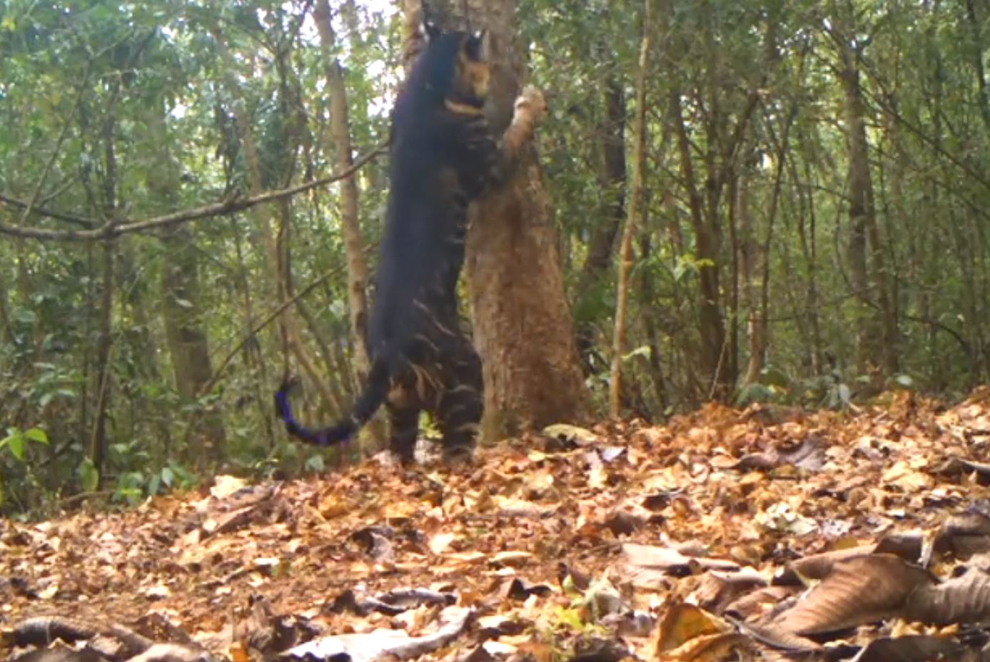 Beautiful camera trap video of a melanistic tiger in Similipal Tiger Reserve, Odisha, the only place where we see blackish tigers because of genetic mutations in the population. pic.twitter.com/KXqvjX8tvs