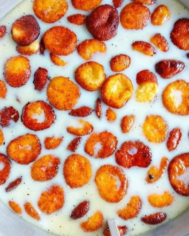 Rasabali is a fried flattened brown cheese cake soaked in thickened and sweetened milk. It is made with chhena (cottage cheese), sugar, milk, and ghee. The chhena is kneaded with sugar and ghee to form a dough, which is then rolled into thin discs and fried. The fried discs are then soaked in a thickened and sweetened milk syrup.