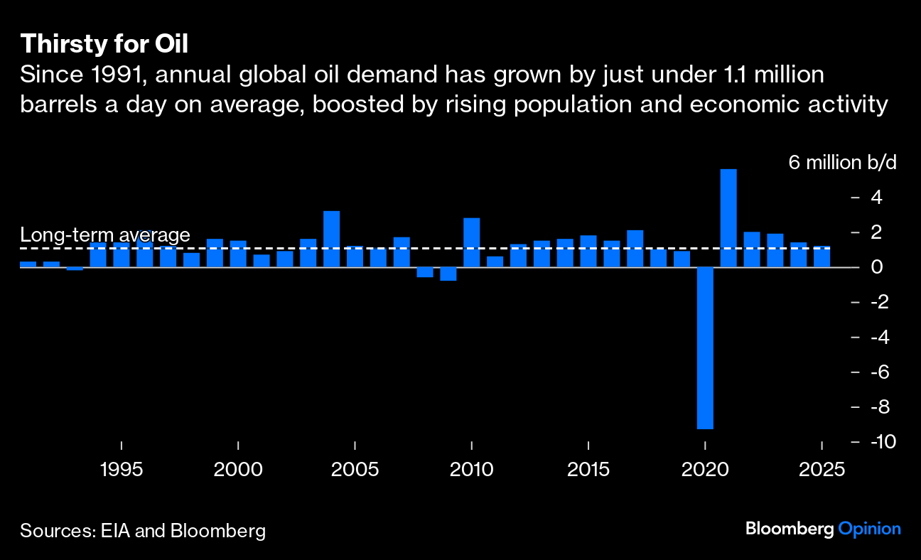 Despite the world agreeing at the COP28 climate talks in Dubai last year to move toward “transitioning away from fossil fuels,” the reality is that the process will take decades. What should be closer, however, is a sharp deceleration in the growth of global oil demand and a peak in consumption. If the zenith in demand is to arrive before the end of this decade, as the International Energy Agency has said, consumption growth needs to start slowing down as soon as next year, before halting completely in subsequent years. That's why 2025 is so important as a bellwether.