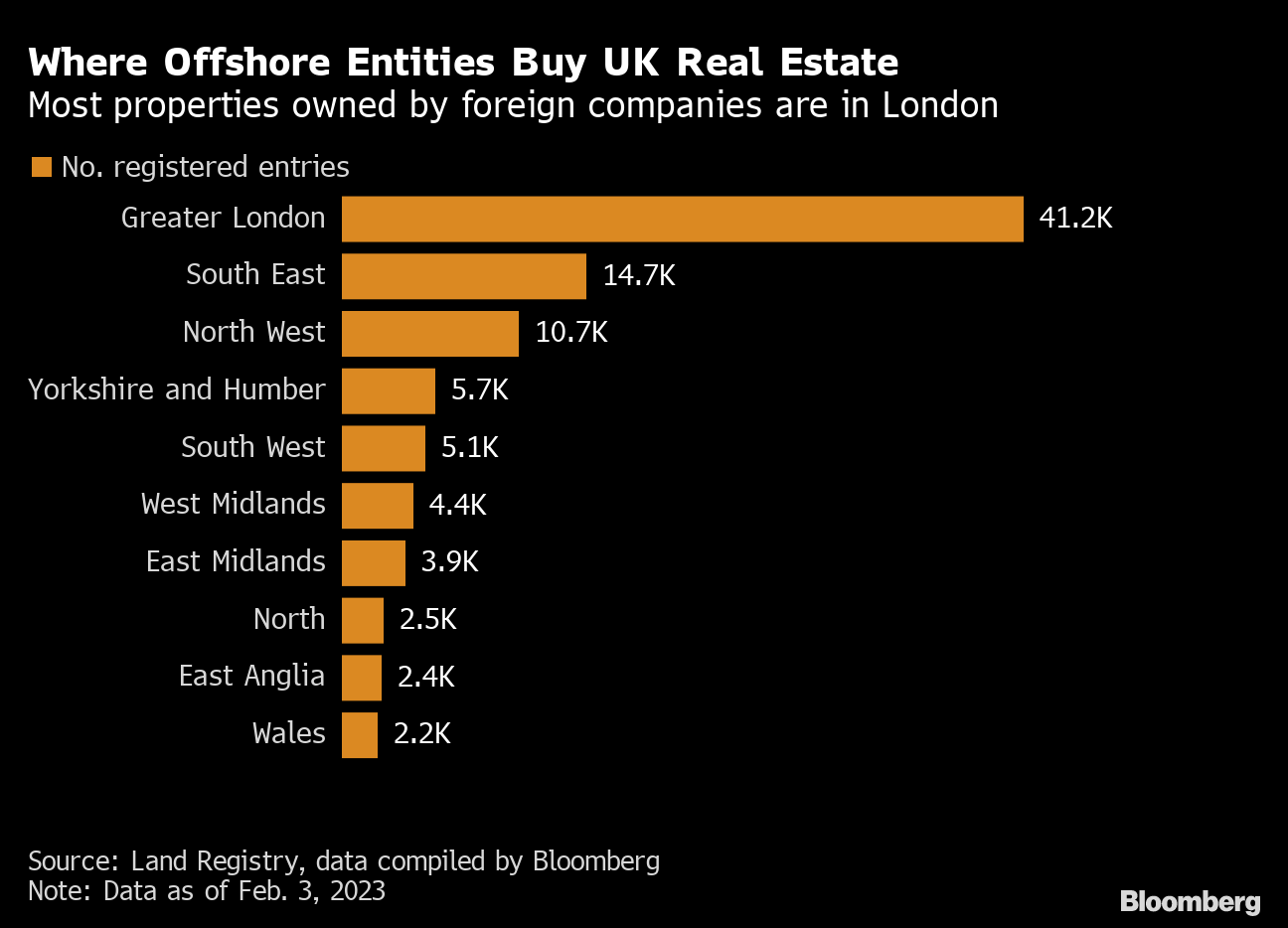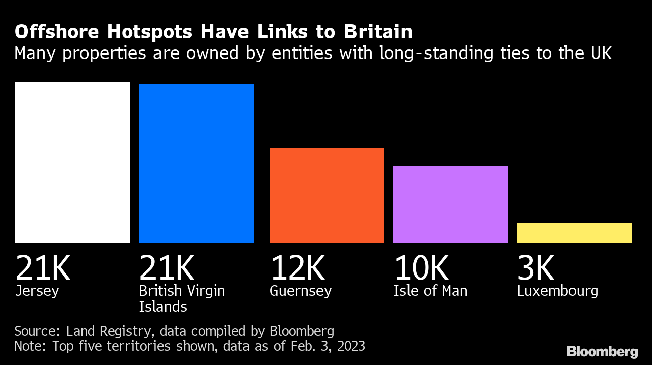 The process has led to property-owning entities incorporated overseas — from the Cayman Islands to Hong Kong and Switzerland — revealing details on their ultimate owners. That provides a rare insight into the cast of royals, billionaires and crypto investors who are among the global super-rich individuals who indirectly own homes in the UK.