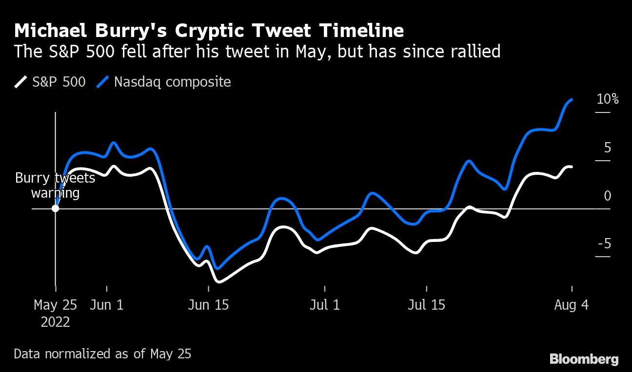 Burry has been predicting a plunge in stock prices for months. For a time, it looked like an accurate prediction, as the S&P 500 posted its worst first half since 1970. However, the gauge of US companies has since rallied 13% from its bottom in mid-June.