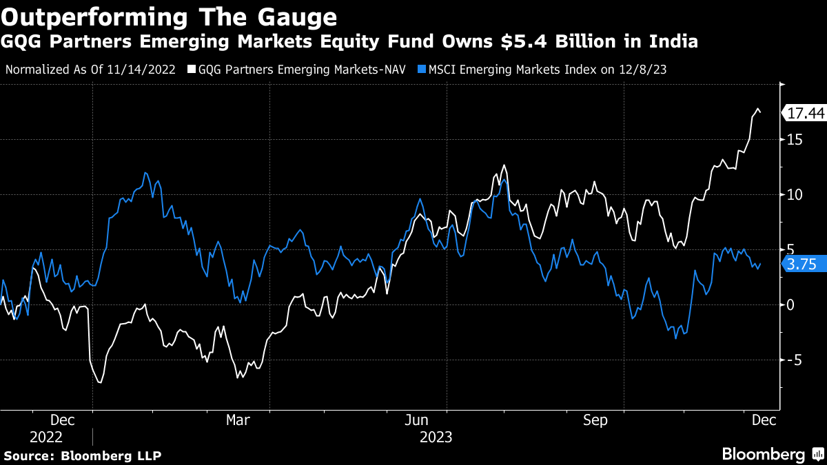 A total of nine GQG funds, that includes mutual funds, collective investments and managed funds, had investments worth $14.5 billion in India as of October end, or about 20% of their total assets under management, according to a Bloomberg analysis of filings. However, portfolio details are available for only six funds that have seen India investments surge by 125% since last year.