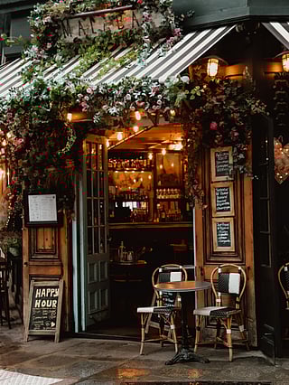 A chic cafe with modern, artsy decor, offering delectable dishes in a picturesque setting.