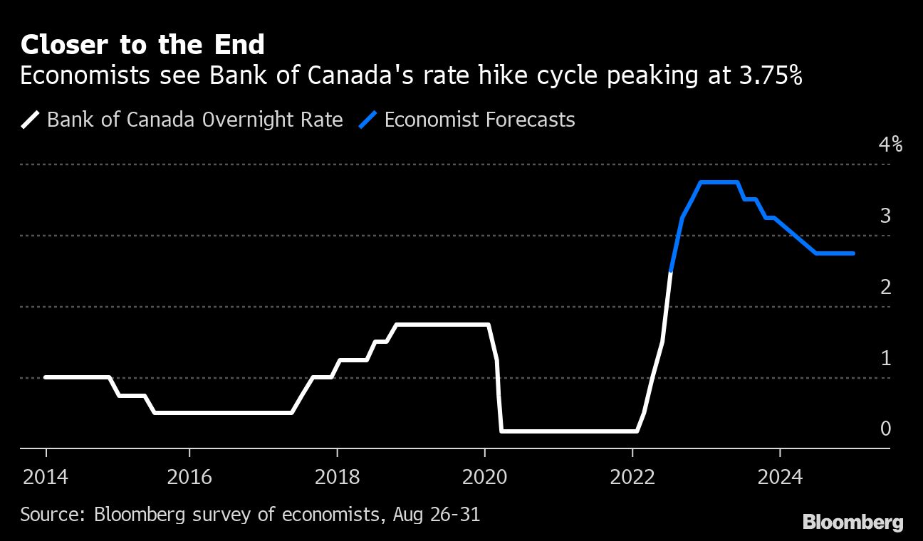 “A further softening in household demand is still required to bring inflation back to the bank's 2% target rate,” Royal Bank of Canada economists Nathan Janzen and Claire Fan said in a Sept. 2 report to investors. But “if household demand and inflation pressures wane as expected, the bank could be in a position to halt its tightening cycle soon.”